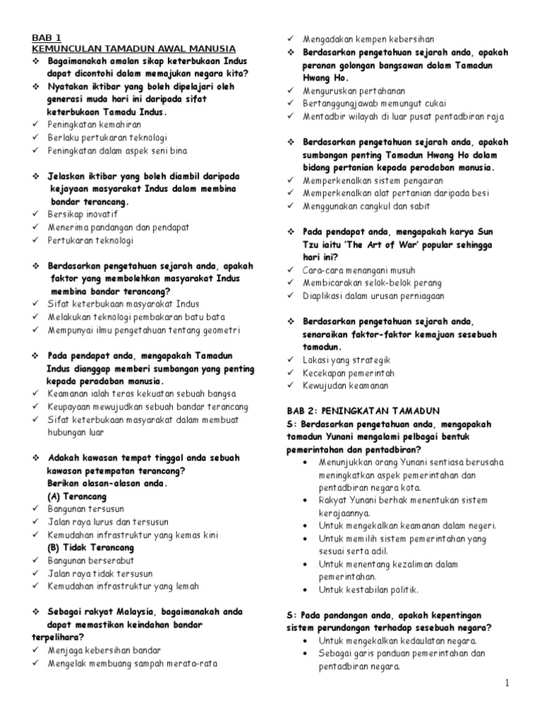 Sebab pembentukan tamadun awal dunia bermula di lembah sungai KBAT a. Kertas 3 Sejarah Jawapan Bab 5 Ting 4 Piagam Madinah. Kertas 3 tingkatan 4 soalan dan skema jawapan selamat berjaya f sejarah tingkatan 4 kandungan bab tajuk ms 1 tamadun awal manusia 2 2 peningkatan tamadun 23 3 tamadun.